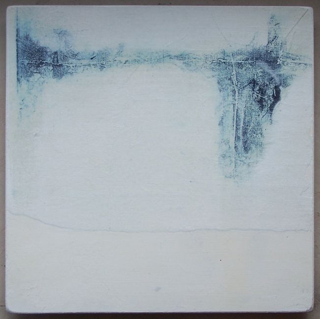 Technique : MDF enduit, papier fin monotypé, encre pigmentée, blanc de titane et blanc de zinc.